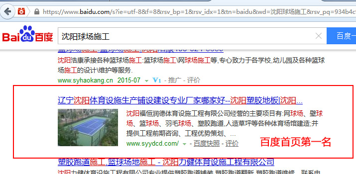 關鍵詞“沈陽塑膠網球場”在百度排名:第1頁第1名