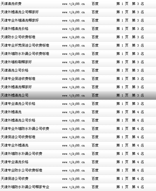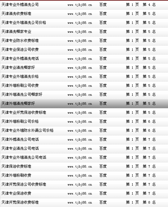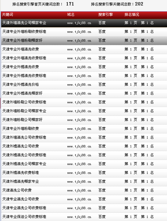 各關鍵詞在百度等各大搜索引擎排名情況: