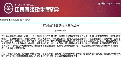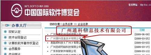 您可以進入“廣州市軟件行業協會”網站: http://www.gzsa.org,點擊“會員名錄”,進入“ http://www.gzsa.org:81/membership.do?mhd=toListInWeb2&sortNum1=0601”,可以非常清楚的看到“廣州通科信息技術有限公司 ”的有關信息。 點擊進去之后: